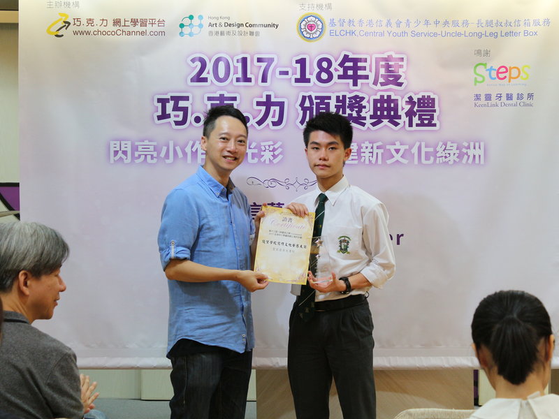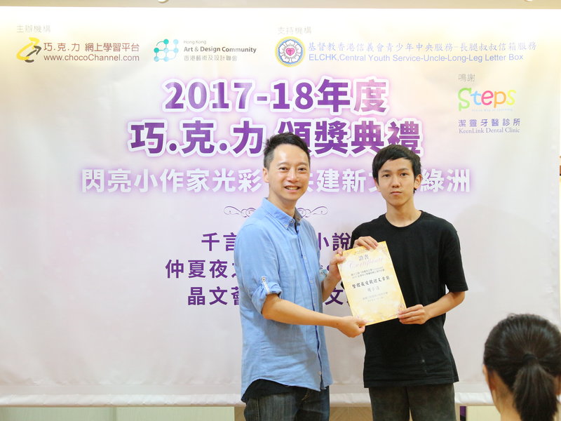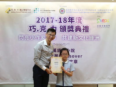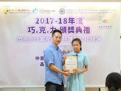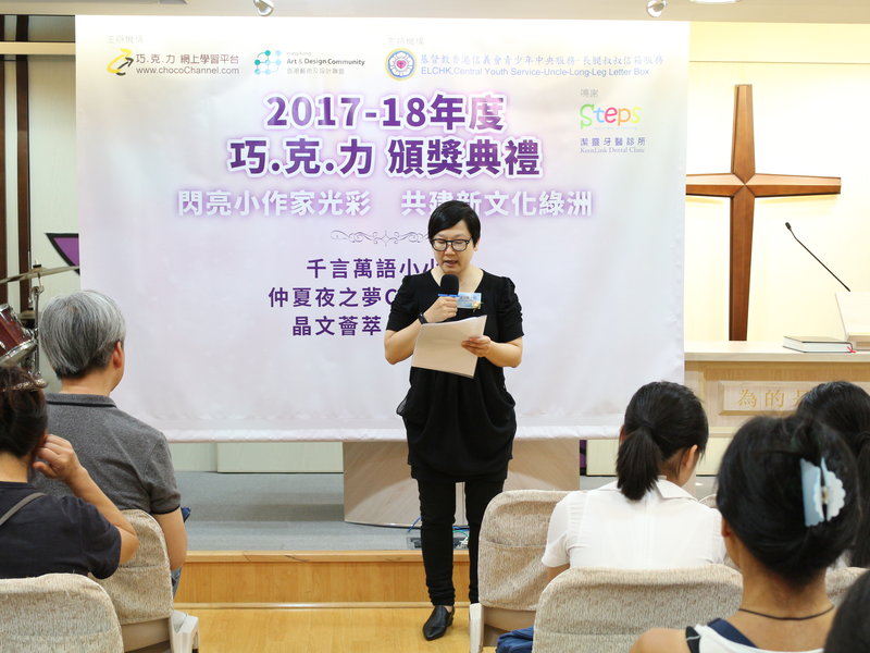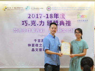 2017-18年度「巧.克.力」頒獎典禮已於2018年6月30日假青山道潮語浸信會舉行,頒發第13屆《仲夏夜之夢 Crossover》2017全港中小學暑期網上寫作計劃、2017-18年度晶文薈萃十優文章,及第四屆千言萬語小小說 — 校際電子書小說創作比賽各獎項。出席的老師、家長、同學及嘉賓一起與各得獎者分享喜悅,場面溫馨又熱閙。